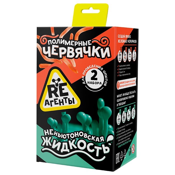 • Набор позволит создать желейных червячков и изучить свойства Неньютоновской жидкости, которая не подчиняется законам физики.