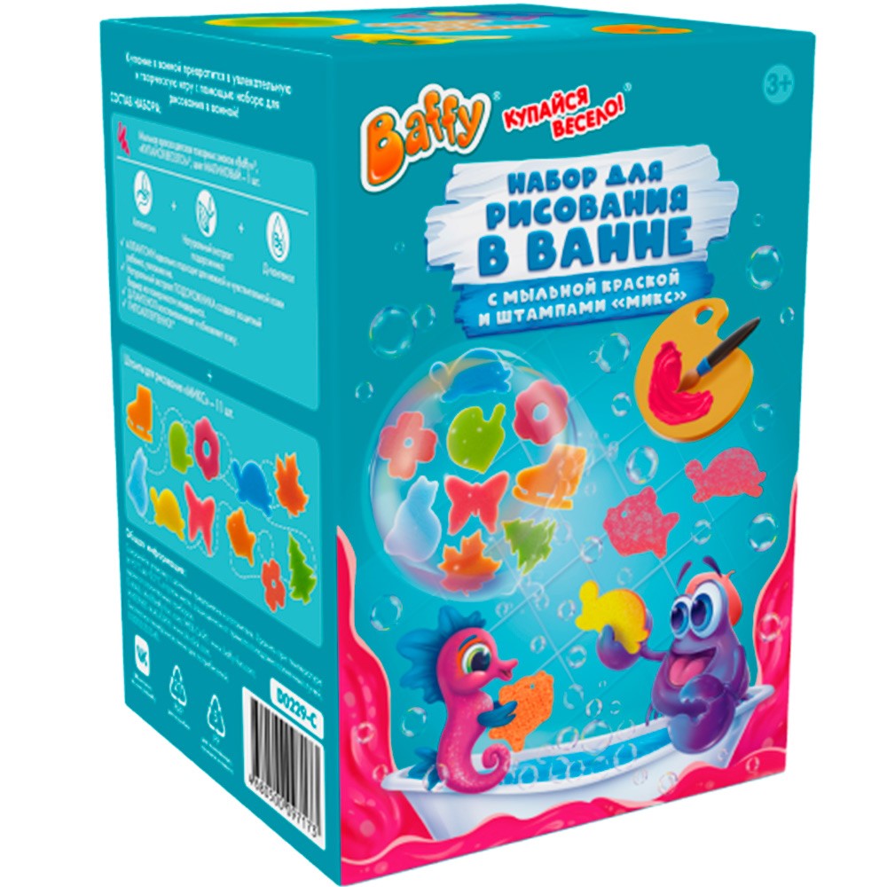 Купание в ванной превратится в увлекательную и творческую игру с помощью набора с мыльной краской и штампами.