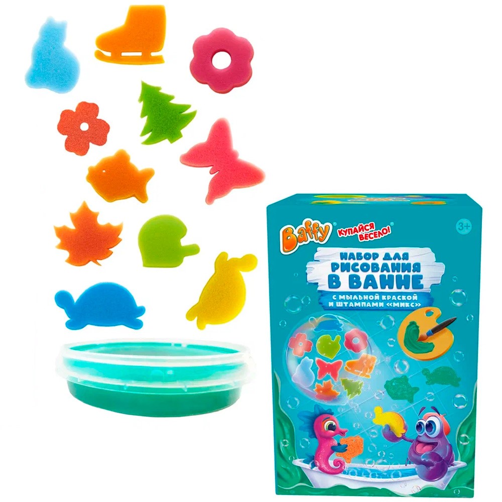 Купание в ванной превратится в увлекательную и творческую игру с помощью набора с мыльной краской и штампами.