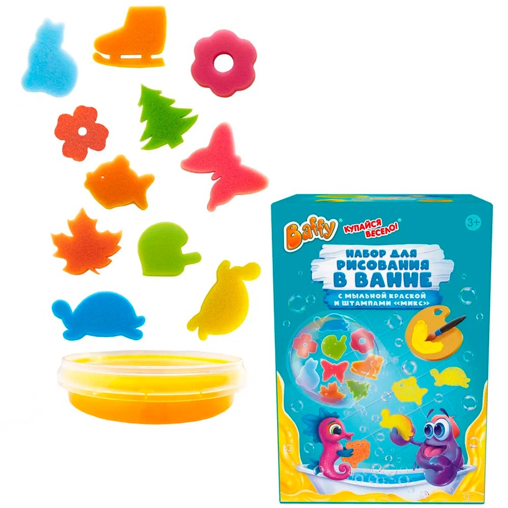 Купание в ванной превратится в увлекательную и творческую игру с помощью набора с мыльной краской и штампами.