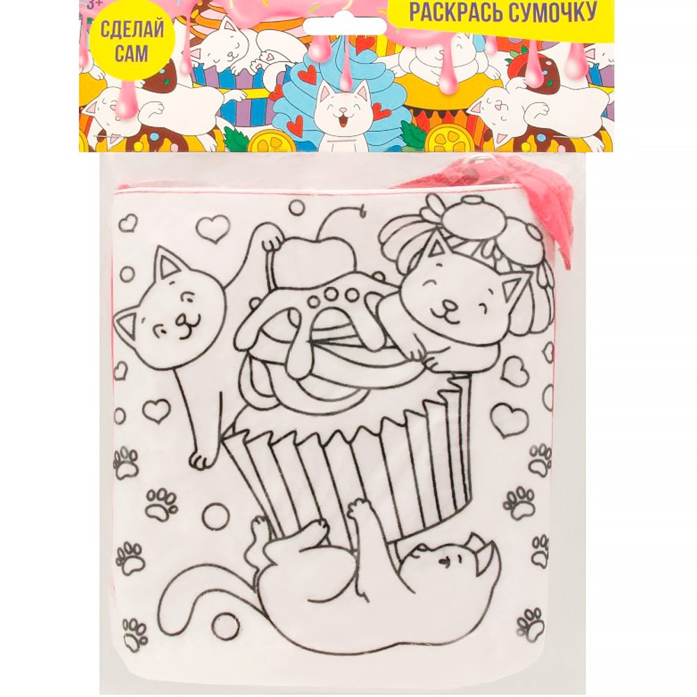 В набор входит сумочка и набор цветных фломастеров, которыми нужно аккуратно раскрасить изделие.