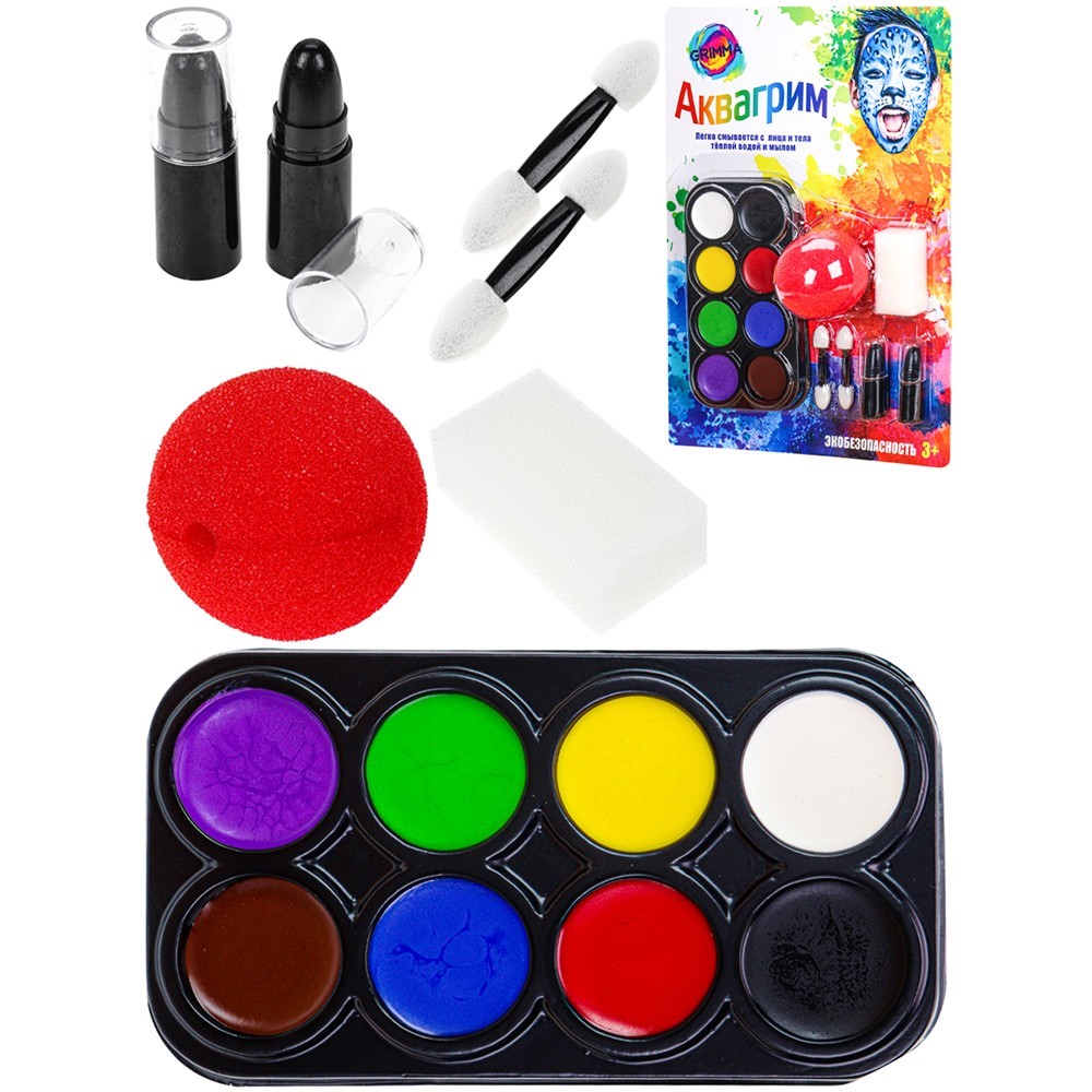 Набор для творчества Аквагрим 8 цветов,нос клоуна-1шт,губ. помада-2шт,спонж-1шт,аппл.-2шт КС-4628 /60/