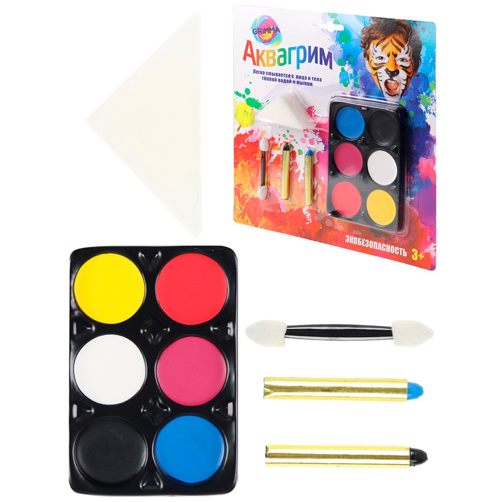 Набор для творчества Аквагрим для детей-6 цветов,карандаш (черный,голубой-2шт),спонж 1шт, аппл 1шт КС-3595