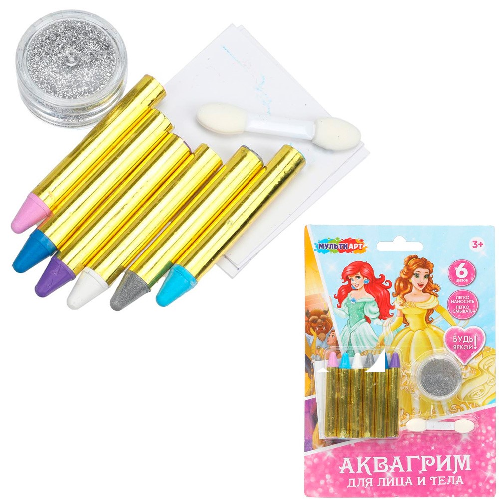 Набор для творчества Аквагрим карандаши 6 цветов классика Принцессы дисней МУЛЬТИ АРТ FACEPAINT-127102