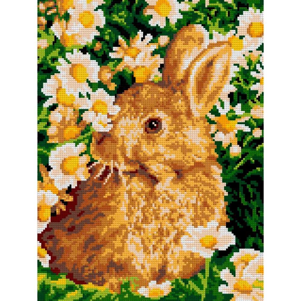 Набор для творчества Алмазная мозаика 30*40 см полное заполнение Зайчик в ромашках Ам-042 LORI