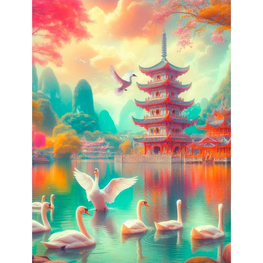 Набор для творчества Алмазная мозаика 30х40см Азиатский храм НД-0888