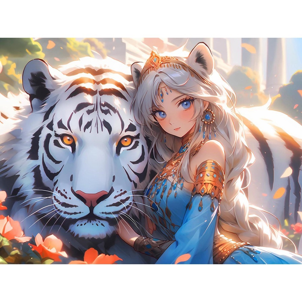 Набор для творчества Алмазная мозаика 30х40см Девушка и белый тигр НД-6305