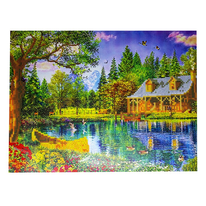 Набор для творчества Алмазная мозаика Домик на озере 40*50см частичная выкладка 87145