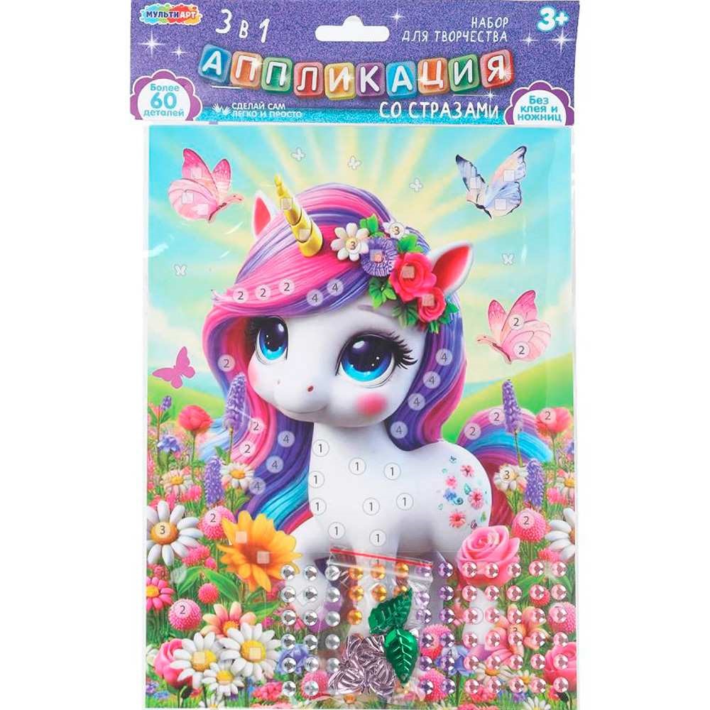 Набор для творчества Аппликация 3 в 1 Эва стразы Единорог МУЛЬТИ АРТ UNIAPP-130402