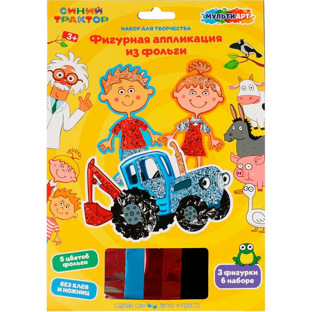 Набор для творчества Аппликация из фольги фигурная СИНИЙ ТРАКТОР 3 шт в наборе МУЛЬТИ АРТ FIGUREFOILART-STR1