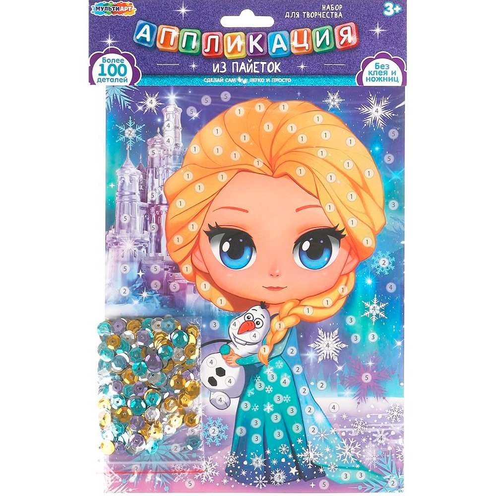 Набор для творчества Аппликация из пайеток 17*23 см Снежная принцесса МУЛЬТИ АРТ SEQPACK-112300