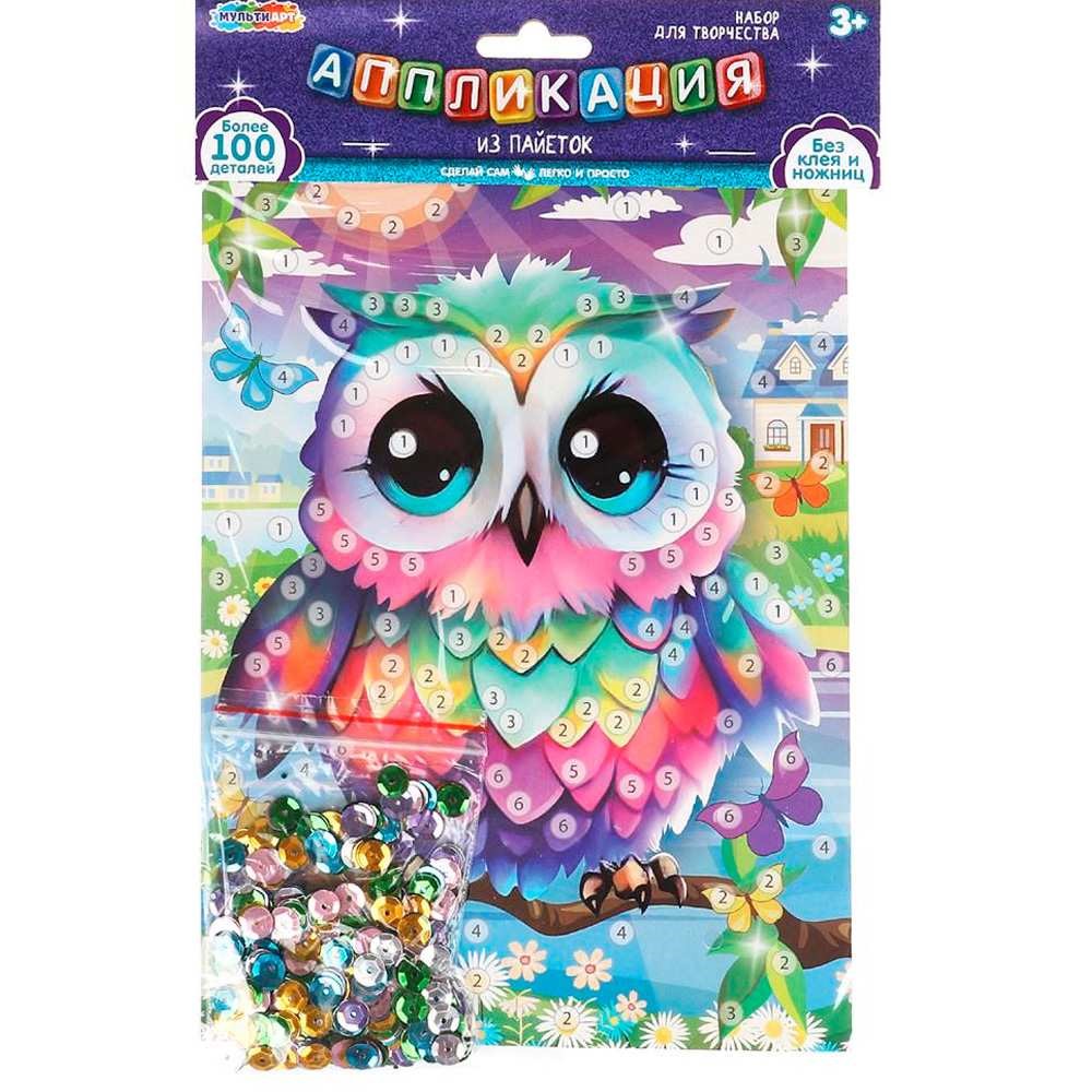 Набор для творчества Аппликация из пайеток 17*23 см Сова МУЛЬТИ АРТ SEQPACK-112282
