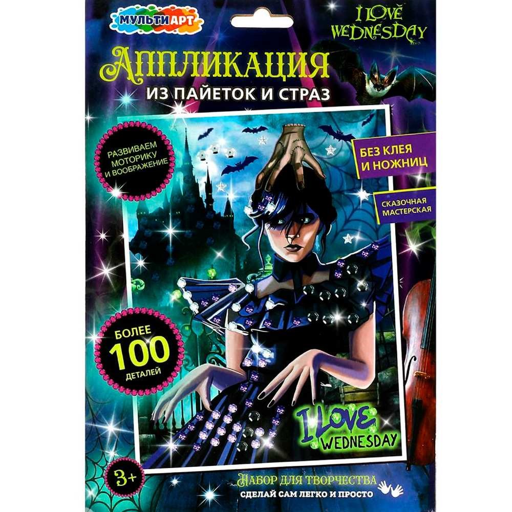 Набор для творчества Аппликация из пайеток и страз 17*23 см Венсдей МУЛЬТИ АРТ GEMSEQ-WED