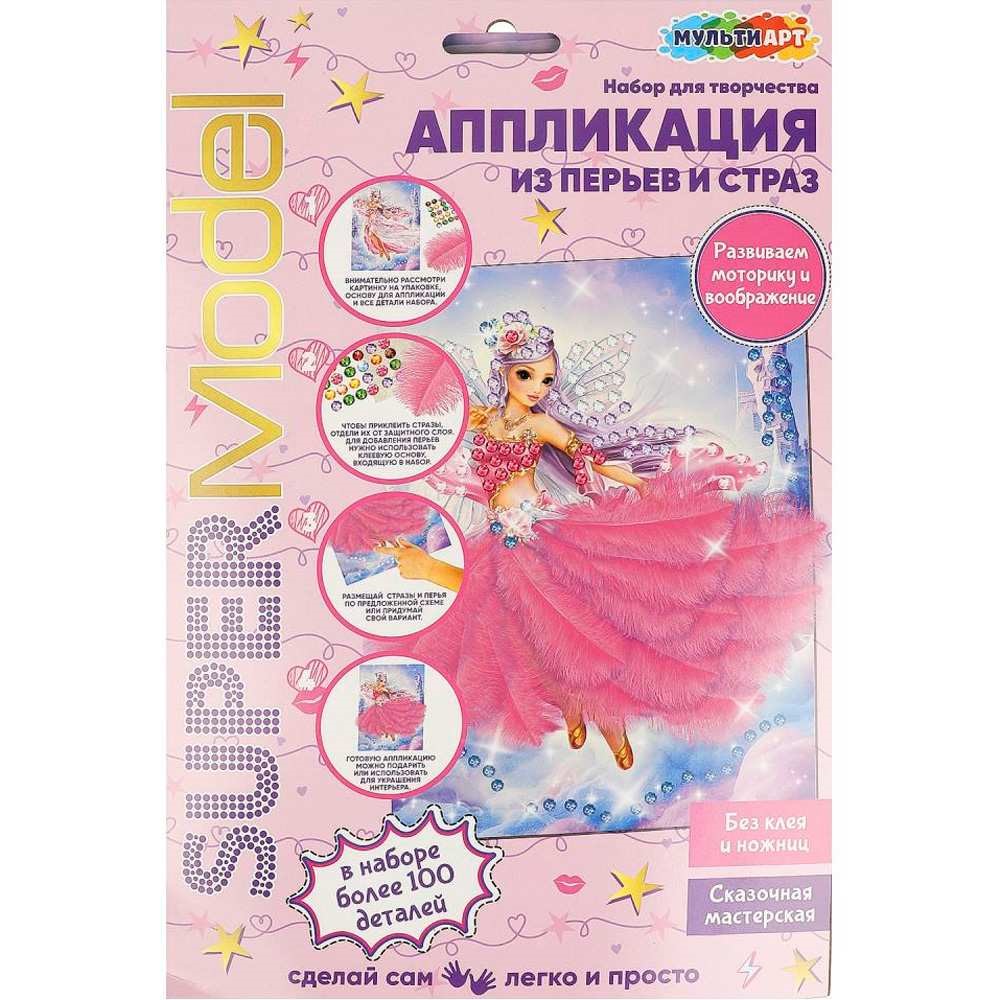 Набор для творчества Аппликация из перьев и страз 17x23 см Стильная фея FEATHGEM-TOPF