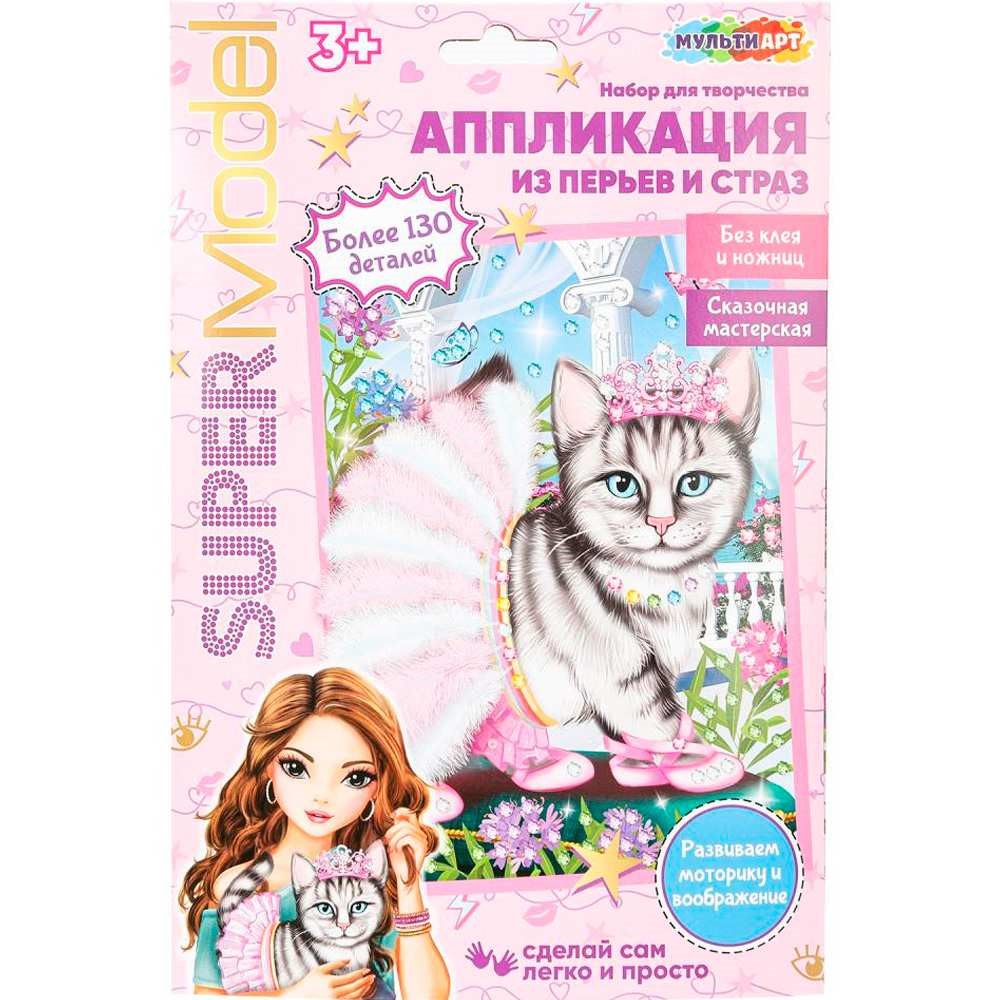 Набор для творчества Аппликация из перьев и страз 17x23 см Стильная кошка FEATHGEM-SMANIM