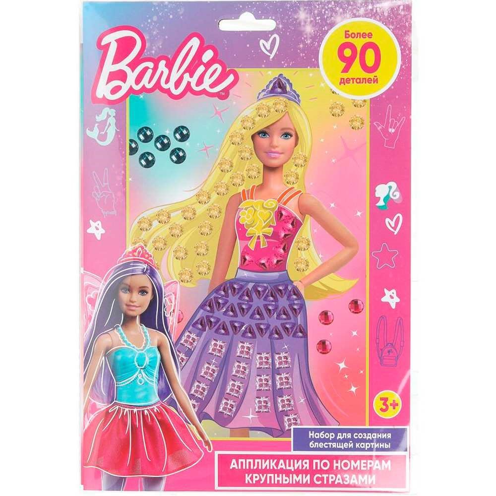 Набор для творчества Аппликация крупными стразами 17х23 см Барби МУЛЬТИ АРТ BIGGEMSART-BRB-FAN1