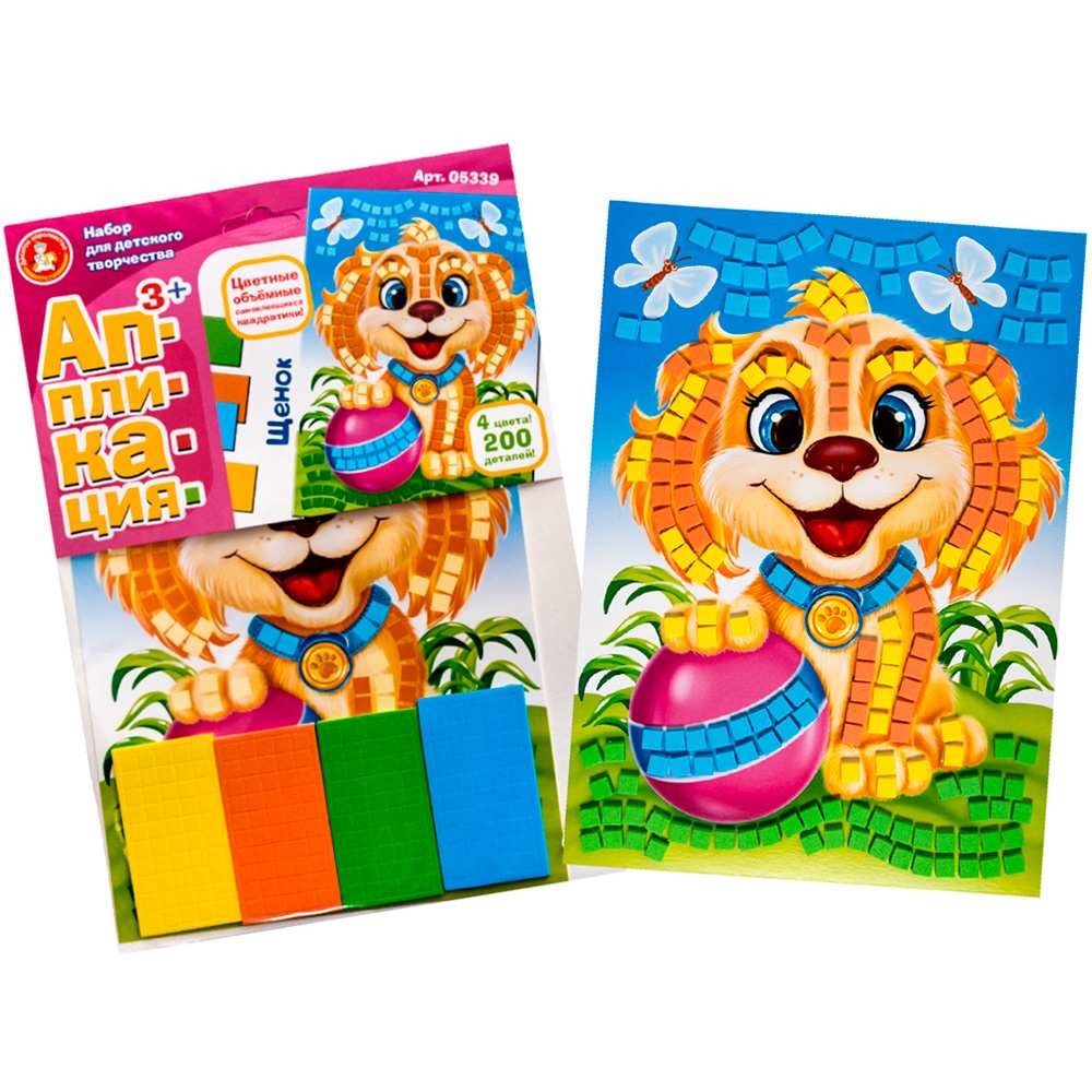 Набор для творчества Аппликация Щенок 4 цв, 200 эл 05339