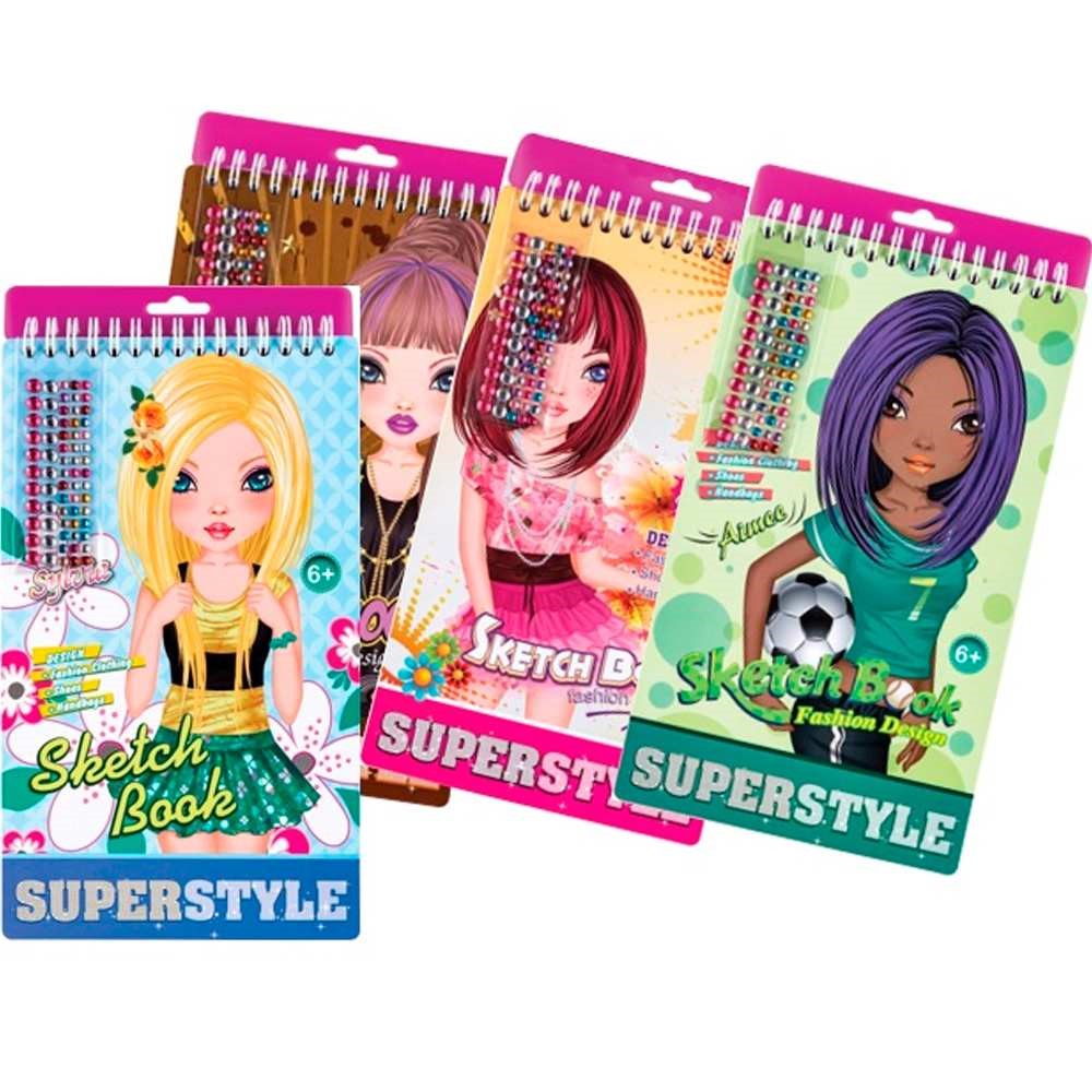Комплектация: блокнот - 1 шт. ( 1 лист со стразами, 3 листа с наклейками, инструкция, 36 листов с эскизами, 5 листов с трафаретами)