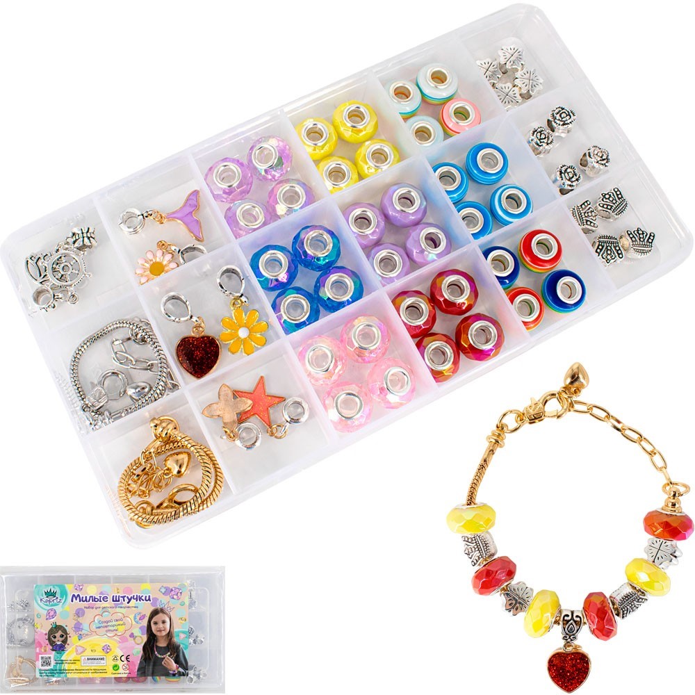 Комплектация: бусины (12 видов), подвеска-кулон (8 видов), основа для браслета (2 вида)