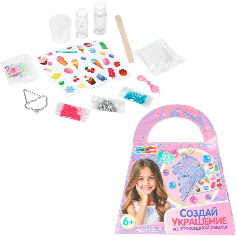 Набор для создания украшений из эпоксидной смолы «Мороженое» ТМ «Мульти Арт» - отличный подарок для маленьких модниц.