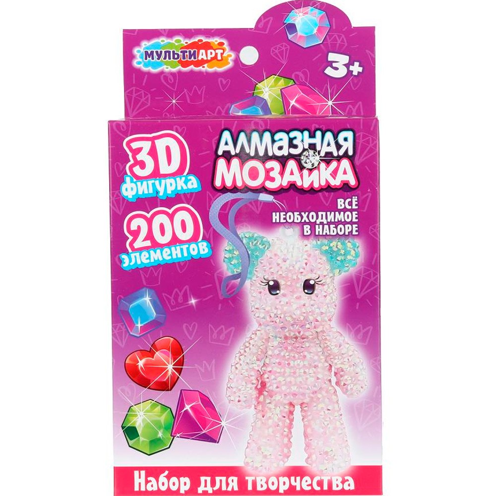 Набор для творчества Фигурка-брелок алмазной мозаикой Мишка МУЛЬТИ АРТ DIAFIGTED-126490
