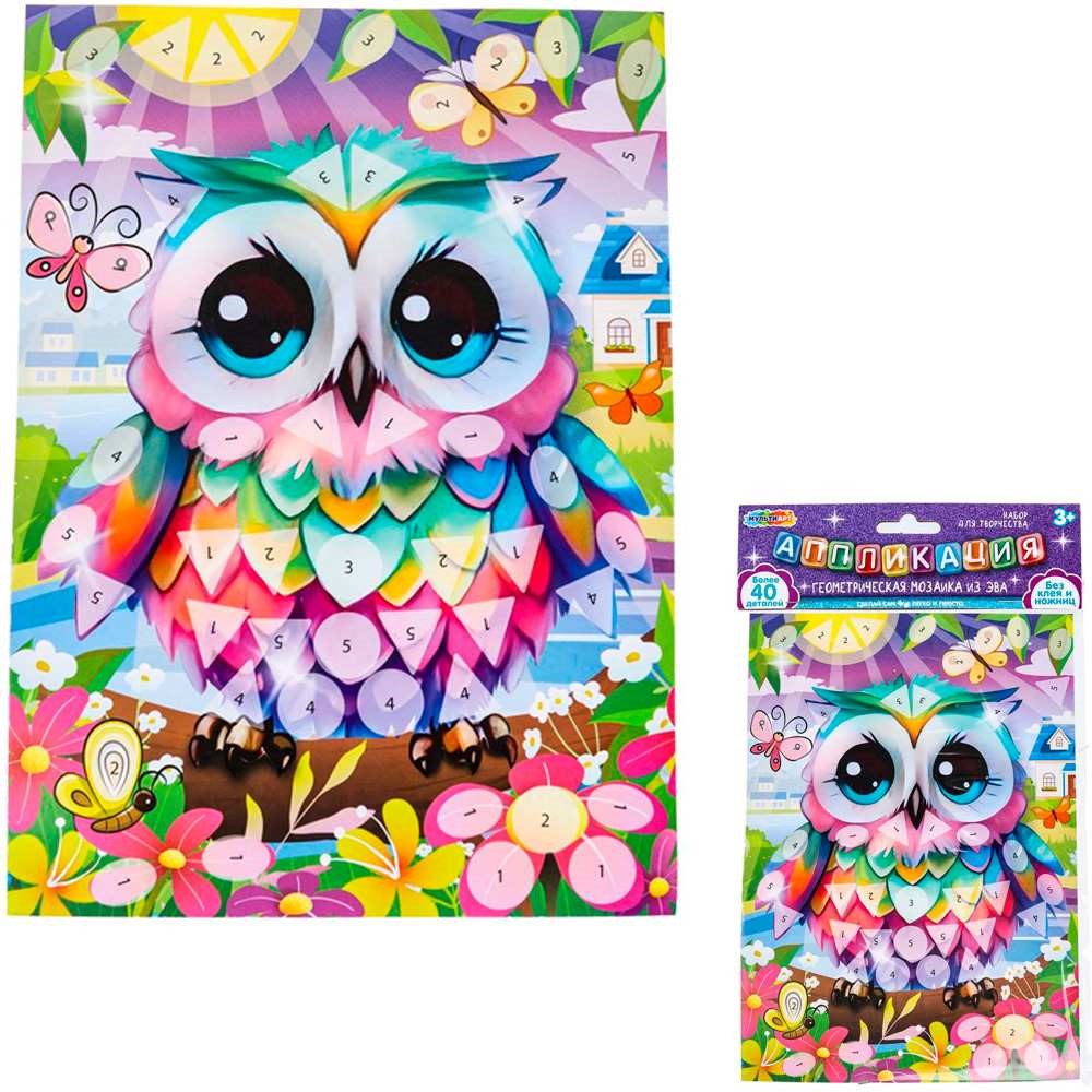 Набор для творчества Геометрическая мозаика из эва 15х21 см Сова МУЛЬТИ АРТ EVAGEO-112370
