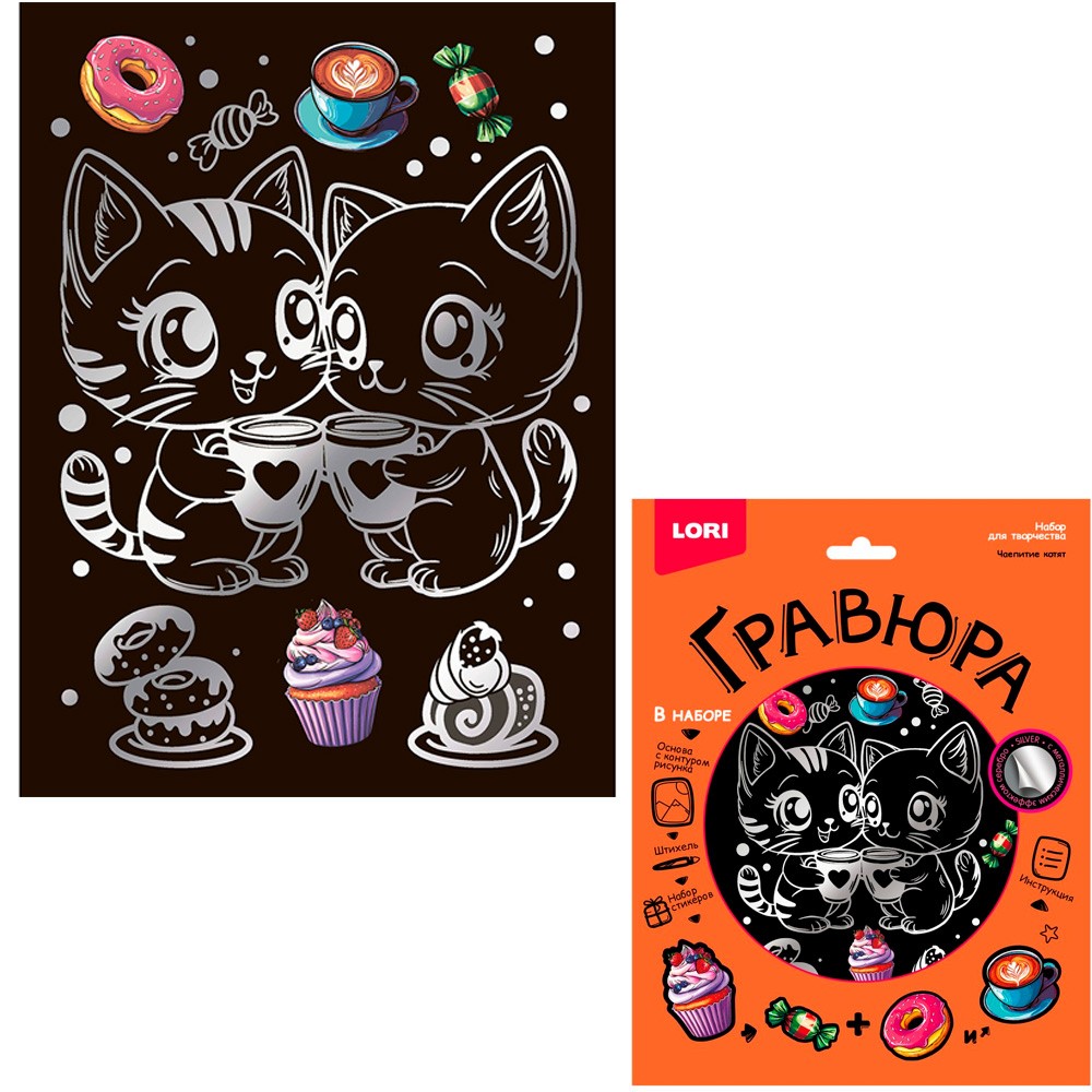 Набор для творчества Гравюра 18*24 Чаепитие котят эффект серебро Гр-773 LORI