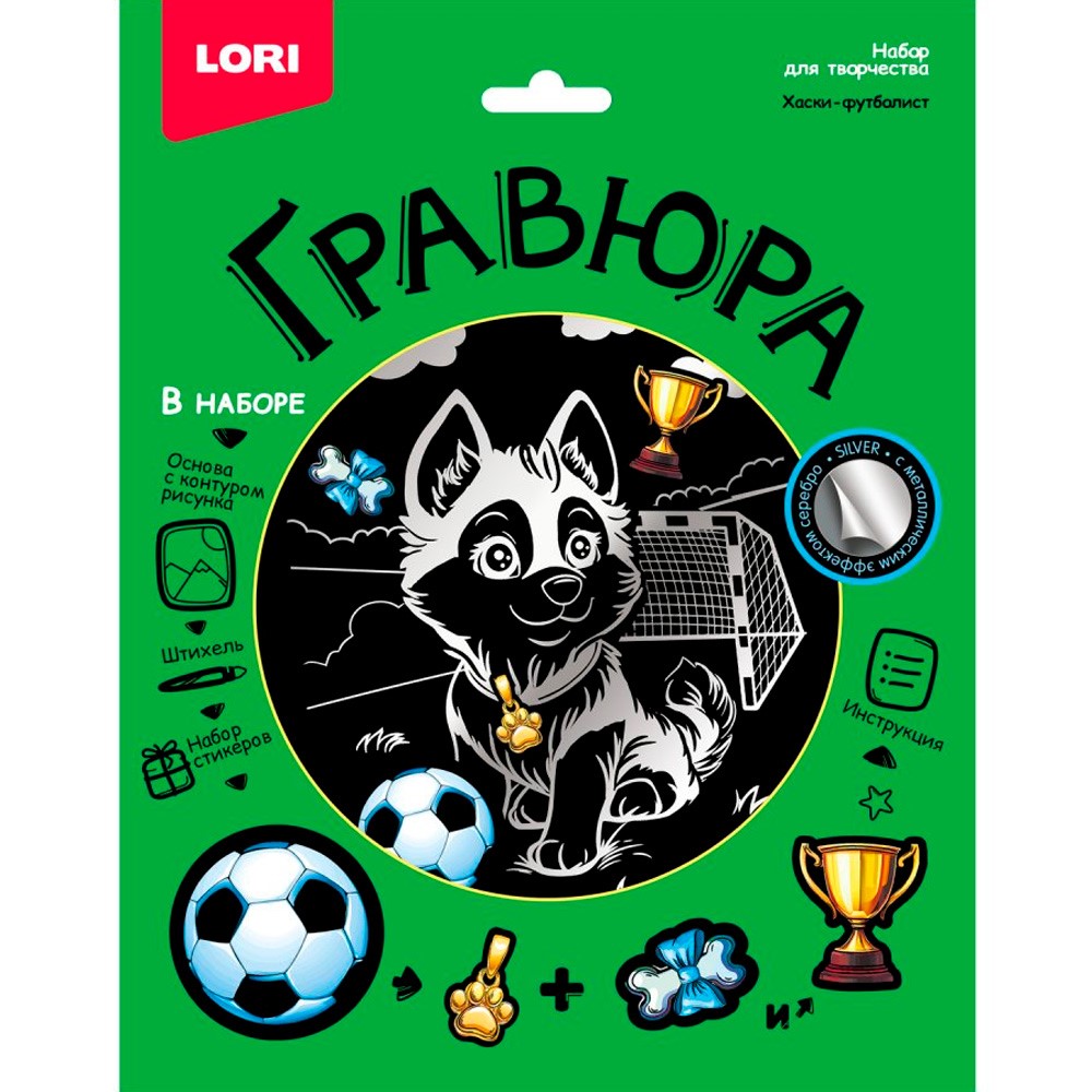 Набор для творчества Гравюра 18*24 Хаски-футболист эффект серебро Гр-772 LORI