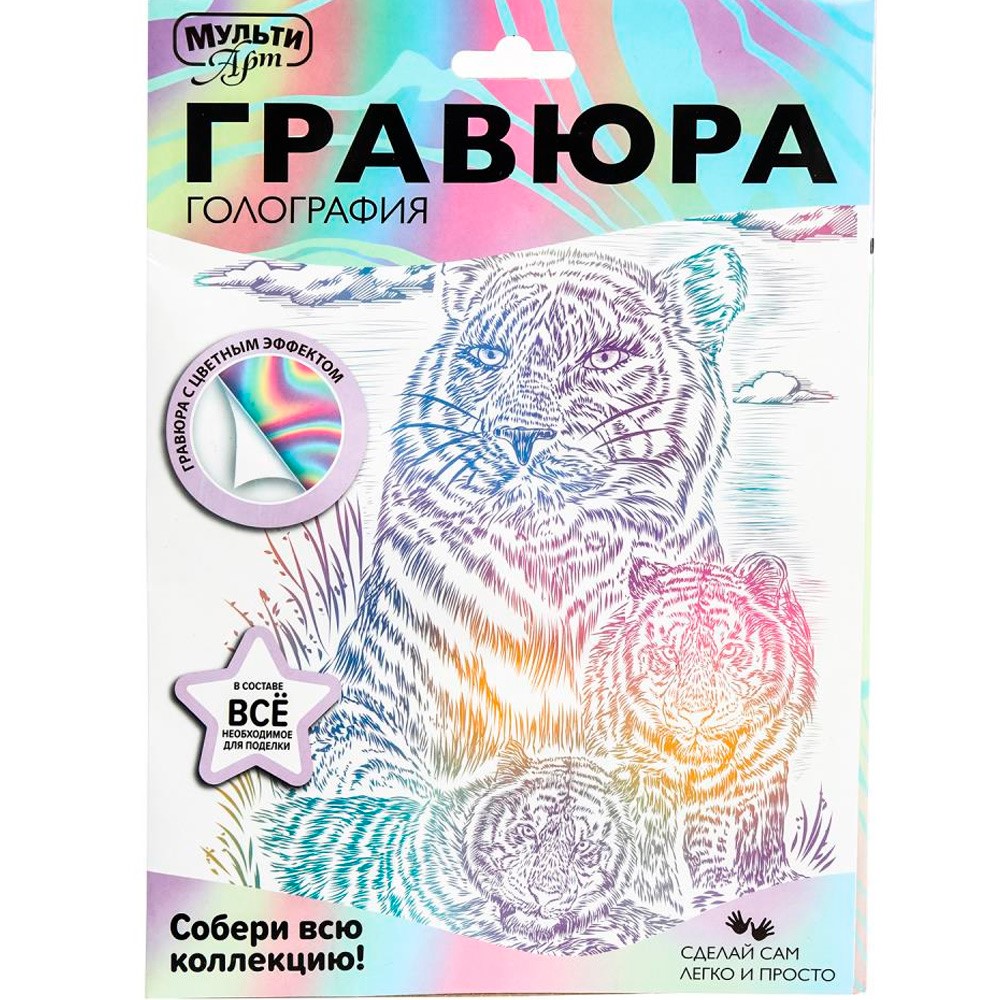Набор Для Творчества Гравюра 18*24 см Тигры белая МУЛЬТИ АРТ SCRWH-115940