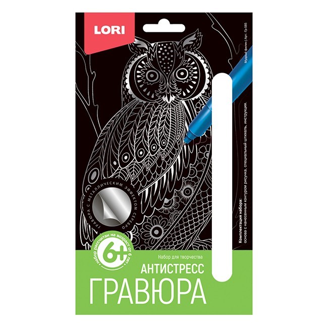 Набор для творчества Гравюра Антистресс малая "Мудрый филин" Гр-585 Lori