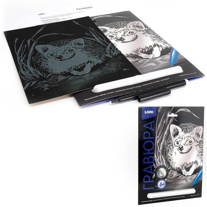 Набор для творчества Гравюра Классика большая с эффектом серебра Забавный ёжик Гр-559 Lori