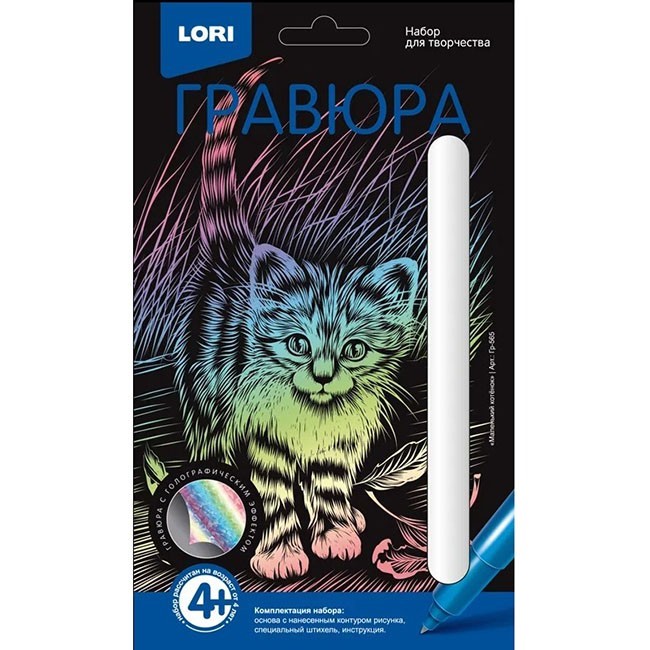 Набор для творчества Гравюра Классика малая с эффектом голографик Маленький котёнок Гр-565 Lori