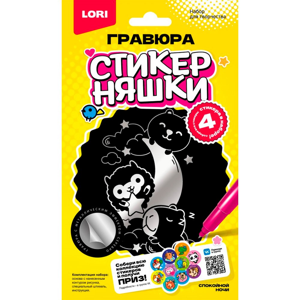 Набор для творчества Гравюра малая Стикерняшки Спокойной ночи серебро Гро-005 Lori