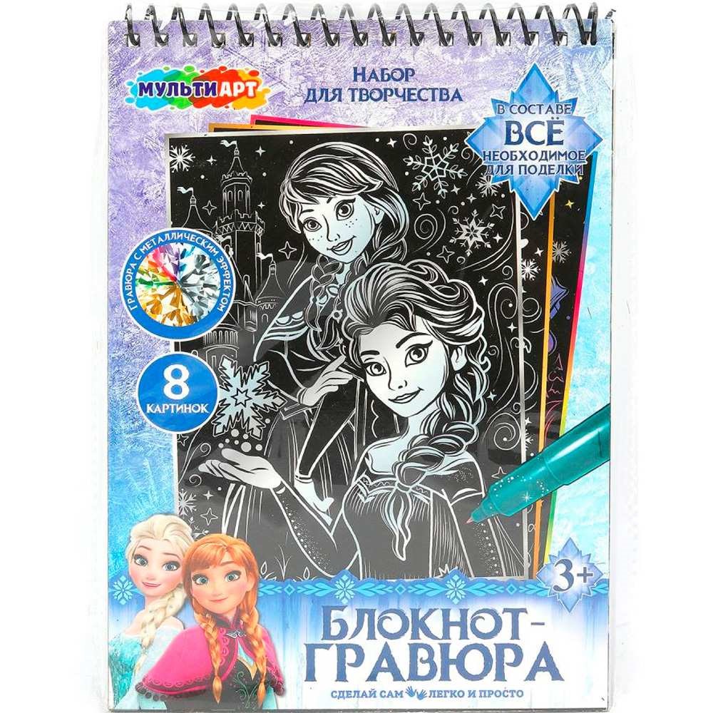 Набор для творчества Гравюры-блокнот 15*21 см 8 картинок Снежная принцесса МУЛЬТИ АРТ SCRBL-111486