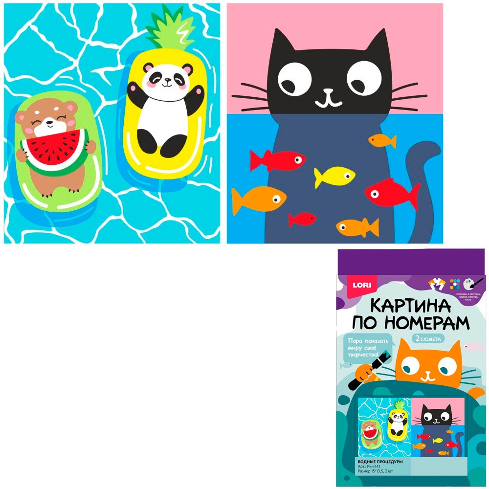 Набор для творчества Картина по номерам 15*13,5, 2 шт Водные процедуры Ркн-141 Lori