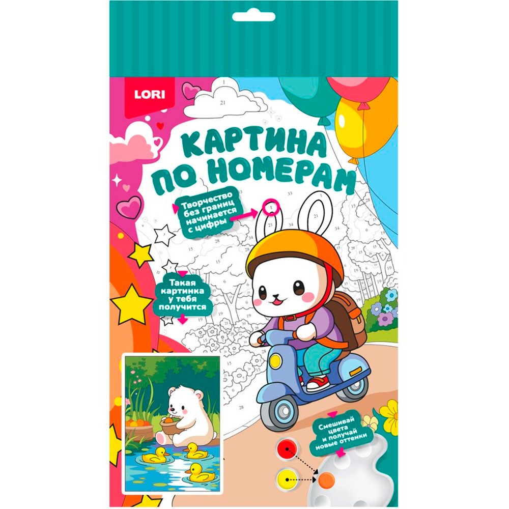 Набор для творчества Картина по номерам для малышей 20х30 Мишка с уточками Ркн-135 Lori