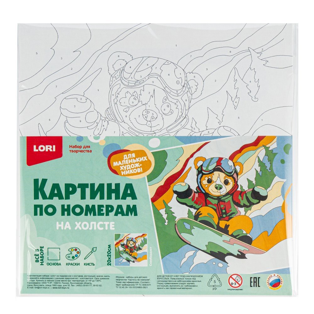 Набор для творчества Картина по номерам на холсте 20*20 см Сноубордист Рхд-042 Lori