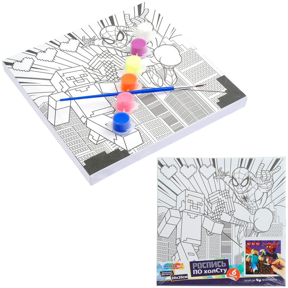Набор Для Творчества Холст для росписи 20*20 см Спайдер и Квадратный мир МУЛЬТИ АРТ CANV20X20-132195