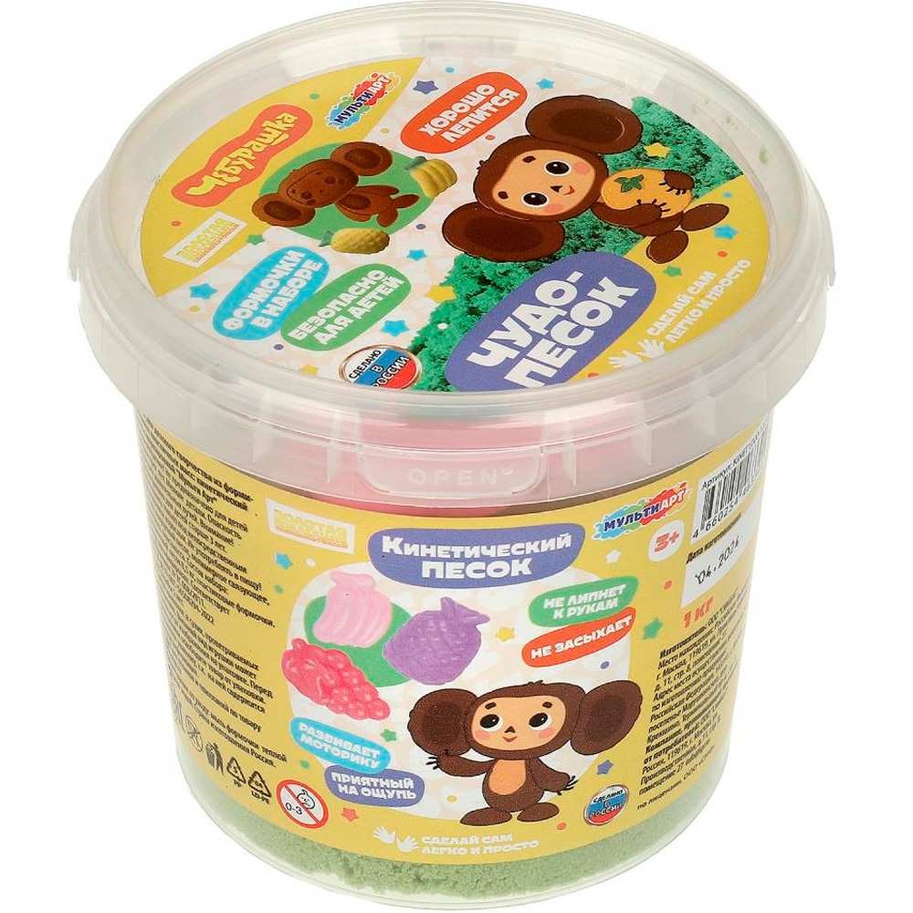 Набор для творчества Кинетический песок Чебурашка с формочками в ведре, зелёный, 1 кг MultiArt KINET1000-122124