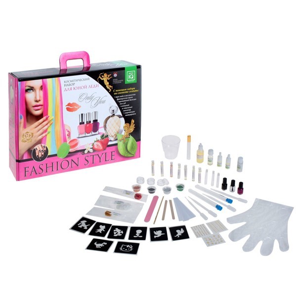 Косметический набор Fashion Style из серии "Для Юной Леди" - комплект косметический принадлежностей, который научит маленькую принцессу делать уникальные вещи. В данном наборе девочка найдет для себя несколько способов сделать уникальные, личные и неповторимые духи, которые будут подходить именно ей, а также делать маникюр, вкусный, гипоаллергенный бальзам для губок и различные яркие и сверкающие татуировки.