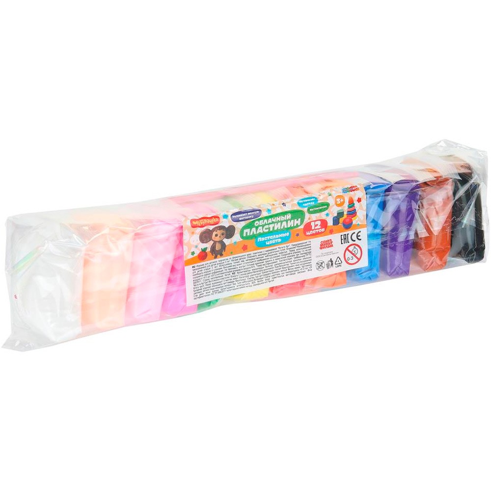 Набор для творчества Легкий пластилин Чебурашка 12 цв. 10 гр пастель MultiArt FLUFPASTEL-CHEB