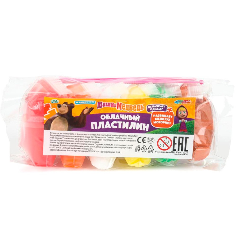 Набор для творчества Легкий пластилин Маша и Медведь 6 цв. 10 гр. MultiArt FLUFFY6-127908