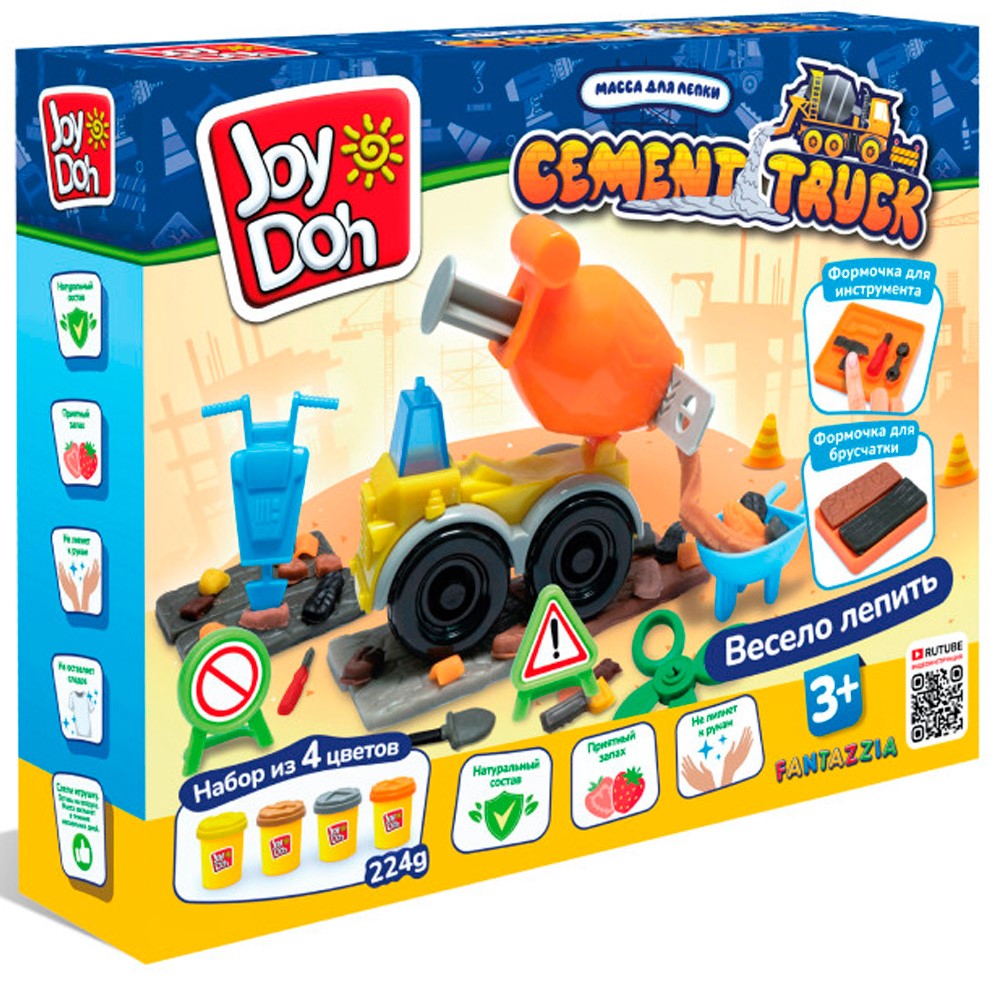 Набор для творчества Масса для лепки Joy Doh, набор CEMENT TRUCK - БЕТОНОМЕШАЛКА, сменная насадка, 9 аксессуаров, 4 баночки с тестом, (4 x 56 г.) TRUK-224 pot