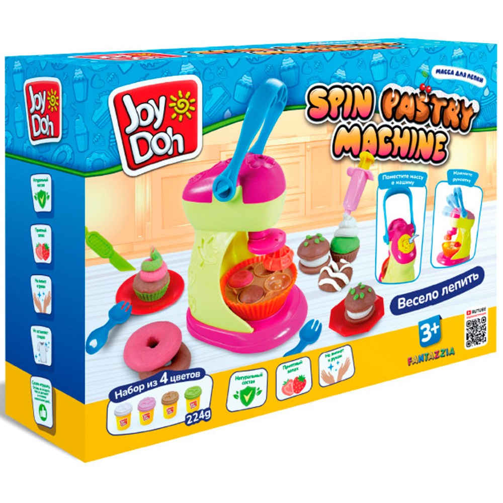Набор для творчества Масса для лепки Joy Doh набор SPIN PASTRY MACHINE - ПИРОЖНИЦА, фабрика пирожных, 11 аксессуаров, 4 баночки с тестом, (4 x 56 г.), SPIN-224 pot /6/ ***