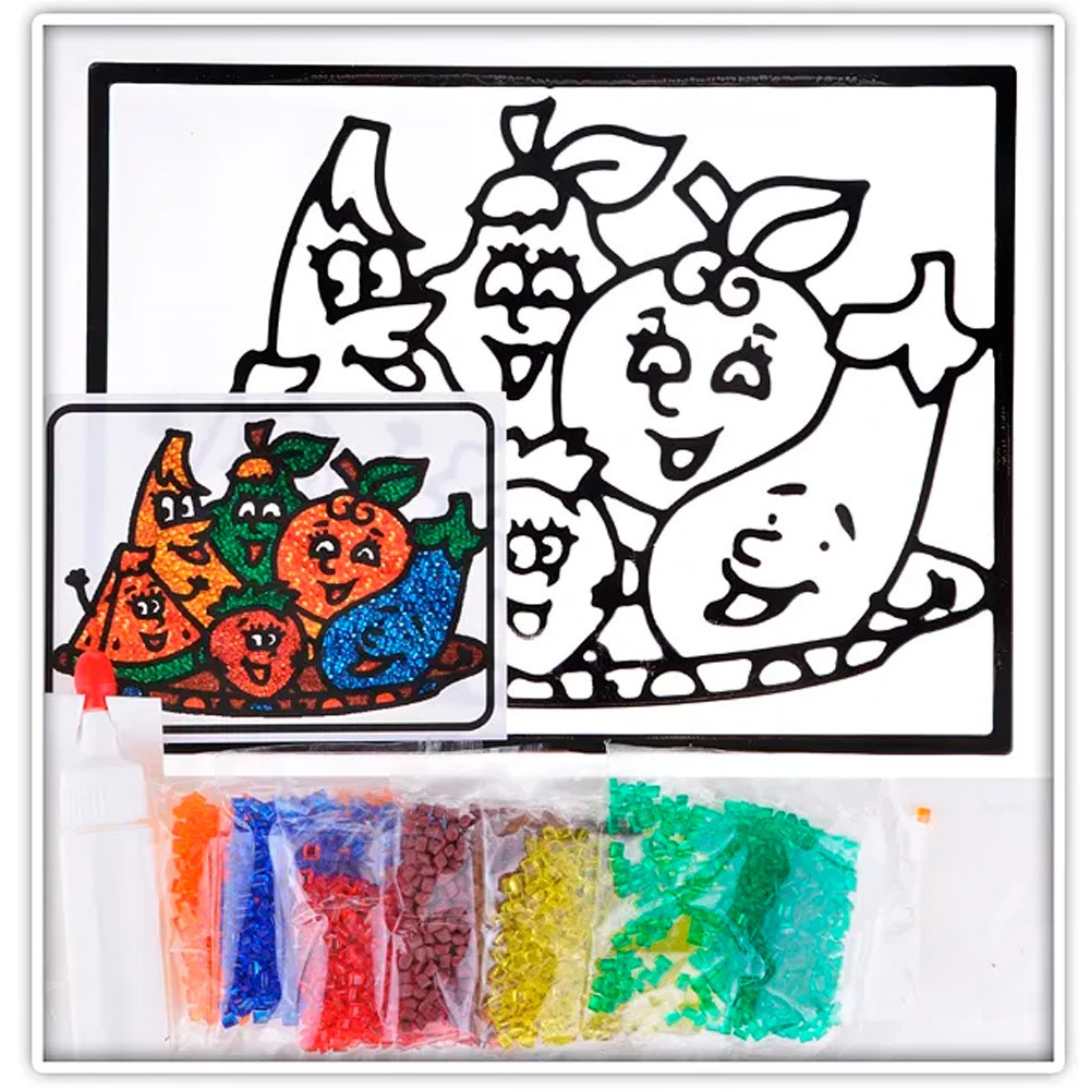 Комплектация: цветная основа - 1 шт., клей - 1 флакон, бусины - 6 цв., картинка-образец - 1 шт.