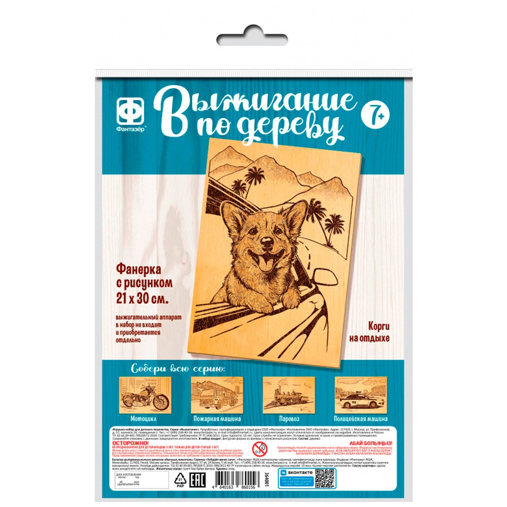 В коробке вы найдете дощечку с нанесенным контуром рисунка.