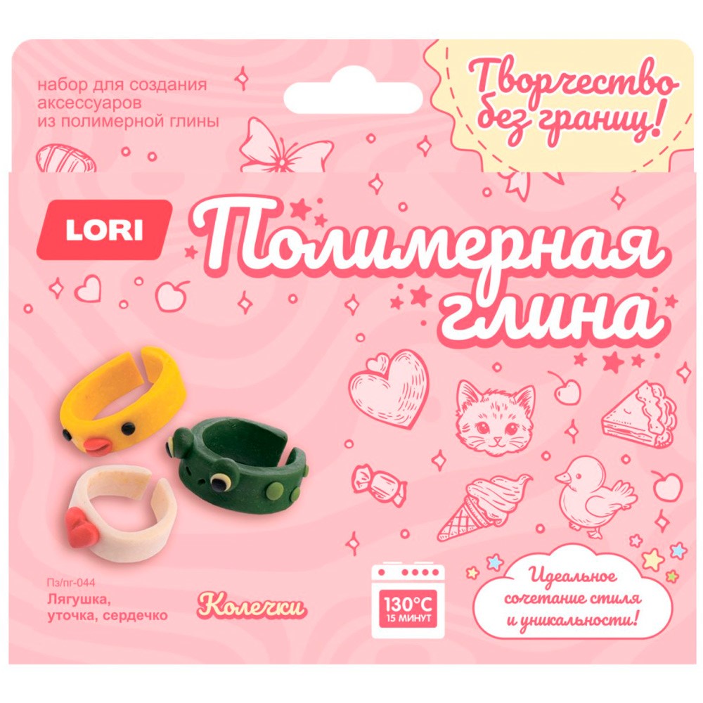 Набор для творчества Полимерная глина.Колечки. Лягушка, уточка, сердечко Пз/Пг-044 LORI.