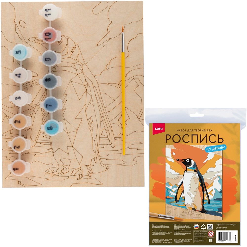 Набор Для Творчества Роспись по дереву. Картина Пингвин на льду Фр-024 Lori.