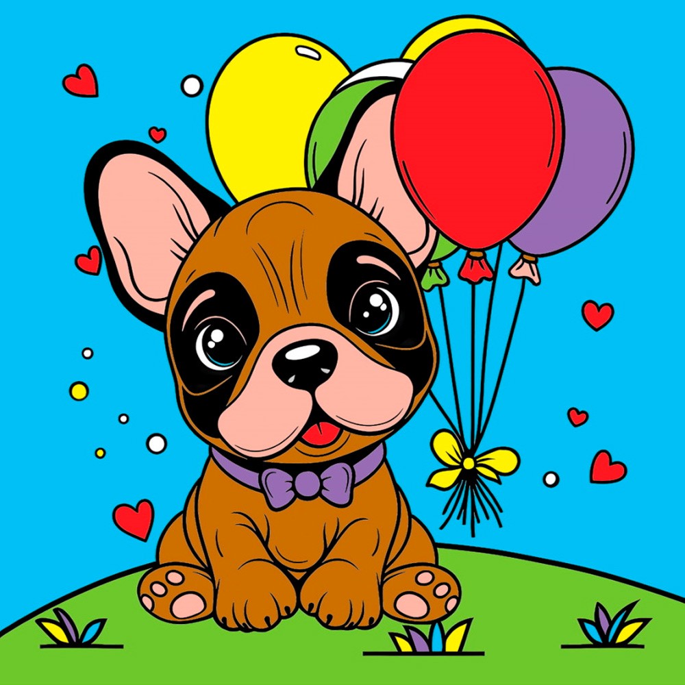 Набор для творчества Роспись по холсту с красками 15х15 см. Бульдог с шариками ХК-0427