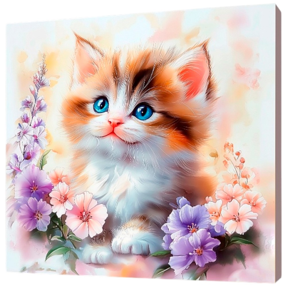 Набор для творчества Роспись по холсту с красками по номерам 20х20 см Котёнок в цветах Х-0740